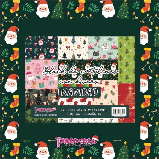 BLOCK A4 CARTULINA CON DISEÑO NAVIDAD PUNTO CERO